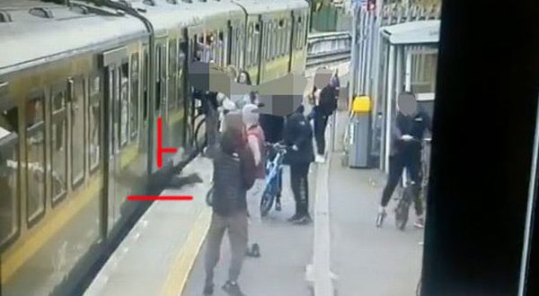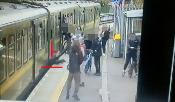 وثق مقطع فيديو، اللحظة التي تسقط فيها فتاة في محطة بدبلن بأيرلندا بين القطار والرصيف، بعد أن دفعها أحد الشباب المشاغبين بيده.