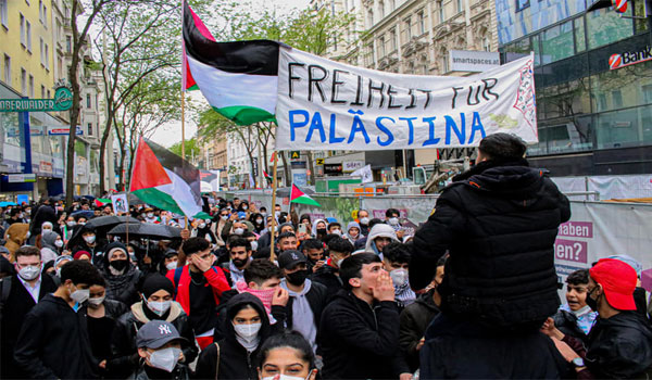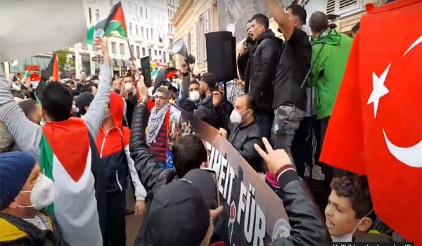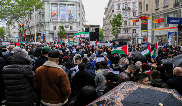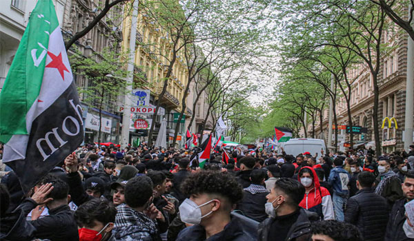 تحت شعار “ننتفض لاجل القدس”، نظم ناشطون من الجالية العربية والإسلامية وبعض المنظمات البسارية النمساوية مسيرة تضامنية مع القدس اليوم الأربعاء الموافق 12 من مايو 2021 ، شارك في المسيرة أكثر من 5 الأف شخص ،رفضا للتهويد في حي الشيخ جراح، واجراءات الاحتلال الاسرائيلي في اقامة الحواجز ومنع الدخول الى المسجد الاقصى، وذلك في قلب العاصمة النمساوية فيينا بـ أشهر شارع تجارى في البلاد “شارع الماريا هلفر أشتراسه” عند ووسط اجراءات امنية ووقائية لمنع تفشي فيروس كورونا