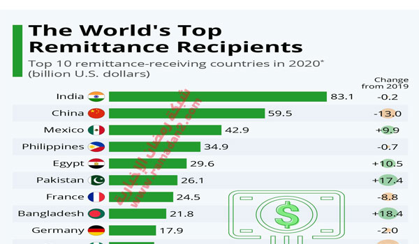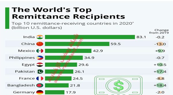 أحصائيات – أكبر 10 دول عالمياّ متلقية للتحويلات في العالم تعرف عليهم؟!