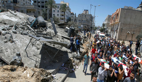 منذ 10 مايو/أيار الجاري، تشن إسرائيل عدواناً بالطائرات والمدافع على غزة، حيث يعيش أكثر من مليوني فلسطيني، استهدف مئات المنشآت السكنية والتجارية والمقار الحكومية، إضافة إلى أراضٍ زراعية.