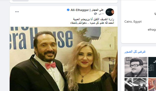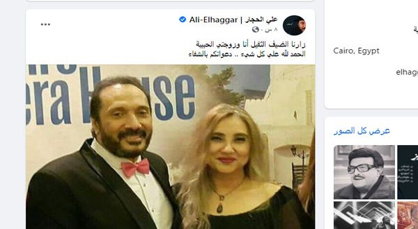 وكتب «الحجار»، عبر حسابه الرسمي على موقع «فيس بوك»: «زارنا الضيف الثقيل أنا وزوجتي الحبيبة.. الحمد لله على كل شيء.. دعواتكم بالشفاء».