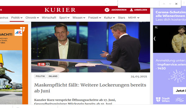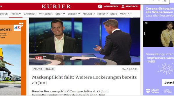 في إشارة أخرى إلى تغلب النمسا على جائحة كورونا، أعلن وزير الصحة فولفجانج موكشتاين اليوم الثلاثاء بـ أنهاء أرتداء الكمامة قريب جداّ ، في الأسبوع الأول من شهر يونيو 2021 عدم أرتداء الكمامة والأقنعة الواقية خارج الأماكن المغاقة في الهواء الطلق ، في حال إذا ظلت إصابات كورونا كما هي الأن منخفضة.