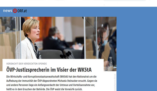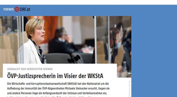 أرسل المدعى العام النمساوى اليوم الأربعاء ، طلباً لرئاسة البرلمان برفع الحصانة عن السيدة ميخائيلا إشتاينكر “Michaela Steinacker”؛ للتحقيق معهم بقضايا تتعلق بالفساد ، وفبول رشاوى أثناء عملها في بنك ” Raiffeisenbank” وقيامها بخدمة مقابل خدمة شخصية لها