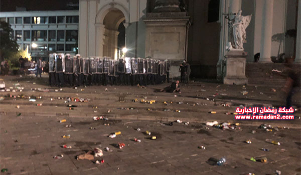 ترك المحتفلون رقعة من الدمار غطت كل ساحة كارلس كيرخه بالزجاجات الفارغة وعلب الكارتون، كما قالت الشرطة ، بجانب أن الحالة المزاجية كانت في بعض الأحيان عدوانية للغاية.