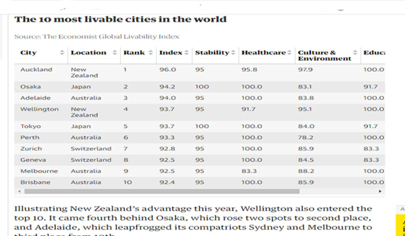 أحدثت جائحة كورونا تغييرات كبيرة في التصنيف السنوي الخاص بترتيب المدن الأكثر ملاءمة للعيش على مستوى العالم، والذي يصدر عن وحدة “إيكونوميست إنتلجنس” Economist Intelligence، التابعة لمجلة The Economist البريطانية، وذلك بعد أن صعدت مدينة أوكلاند النيوزيلندية إلى الصدارة بدلاً من مدينة فيينا النمساوية، فيما أصبحت فيينا خارج قائمة الـ10 الأوائل، وهو الأمر الذي يعتبر مفاجأة كبيرة.