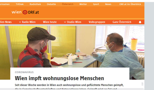 وتواصل السلطات الصحية النمساوية حملة التطعيمات المضادة لفيروس كورونا المستجد، لمواجهة تفشي الفيروس التاجي على أرضها، ولكن المشردين من الفئات المهمشة التي لم تصل إليها اللقاحات، وهو ما دفع عدد من الأطباء إلى بدء حملة تطعيمات متنقلة لمن يصعب الوصول إليهم، وغالبًا ما يكونون أكثر عرضة للإصابة بالمرض