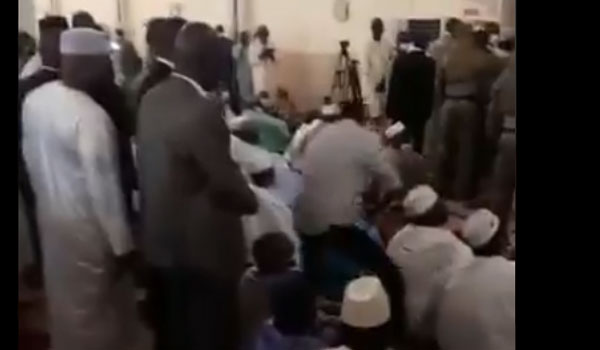 وفجأة، اندفع شاب من بين المصلين ونجح في الوصول إلى الرئيس وبدا أنه يريد أن يطعنه في رقبته، إلا أن الحراس انقضوا عليه بسرعة فوقع على الأرض.