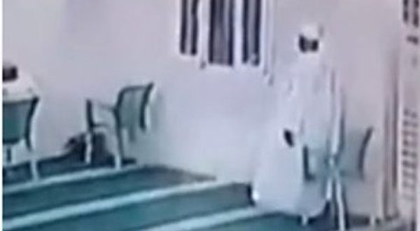وفور عودة الرجل المسن بالمصحف، لم يجلس على الكرسي الذي صلى عليه قبل ثواني، بل جلس على آخر يبعد عنه أمتارًا قليلة، حسبما أظهرت أحدى كاميرات المراقبة داخل المسجد.