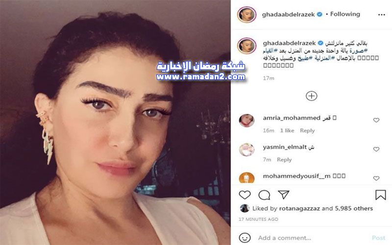 فكتبت في تعليقها عليها : ” بقالي كتير منزلتش صورة .. يالا واحدة جديدة من المنزل بعد القيام بالأعمال المنزلية طبيخ وغسيل وخلافه ”