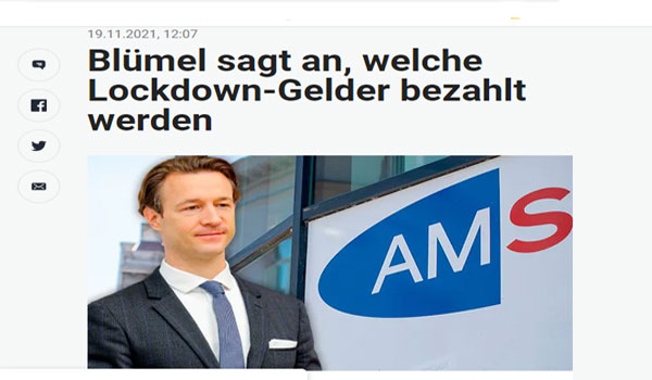 أعلن وزير المالية النمساوى جيرنوت بلوميل ووزير العمل مارتن كوخر ، عن حزمة جديدة من المساعدات المالية لتعويض الشركات والأشخاص المتضررين بسبب تفشي وباء كورونا ، في فترة الإغلاق الممتدة حتى 12 ديسمبر 2021، وسيسري العمل بنظام الوقت الفصير “Kurzzeit” حتى نهاية العام الحالي 2021