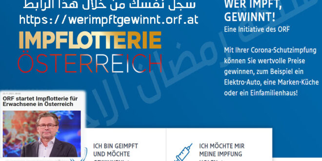 مبادرة جدديدة أطلقها التلفزيون النمساوى “ORF” لزيادة معدل التطعيم ضد فيروس كورونا في النمسا، بالسحب على ما يقرب من 1000 جائزة مادية – منها منزل عائلي مجهز جزئياً وسيارة كهربائية للأشخاص الذين يحصلون على التطعيم ضد فيروس كورونا.