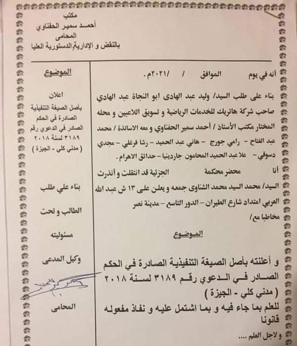 وأكد الوكيل أنه حصل هى صيغة الحكم وموعد التنفيذ اليوم.