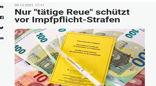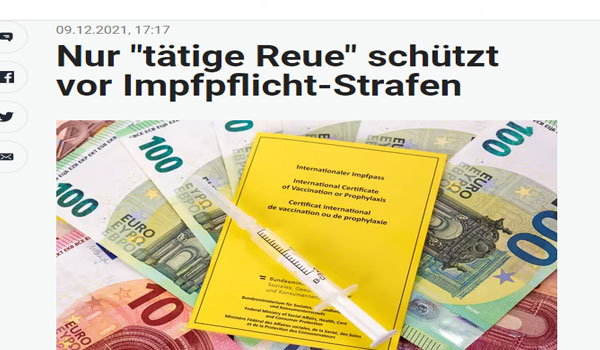 نشرت الصحف النمساوية اليوم الخميس الموافق 9 من ديسمبر 2021 ، خطط تغريم كل من يرفض التطعيم الإجباري ضد فيروس كورونا للذين تبلغ أعمارهم فوق الـ 14 عاماً ، كل ثلاثة أشهر بقيمة تتجاوز 3600 يورو.
