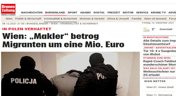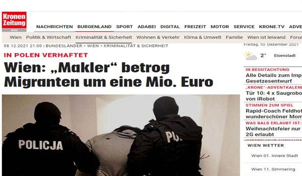 أخبراّ سقط نصاب عقارات فيينا في قبضة الشرطة بعد تحرير عدة محاضر نصب ضده، شاب يبلغ من العمر 25 سنة يشتبه في أن يكون قد نصب على 170 عائلة في العاصمة النمساوية فيينا