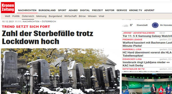نشرت الصحف النمساوية اليوم الجمعة ، أن النمسا شهدت أشد موجة لانتشار وباء كورونا، وقد تخطى إجمالي عدد الوفيات في الفترة ما بين 22 وحتى 28 من نوفمبر حوالى 2146 حالة وفاة ، رغم تطعيم نحو ثلثي السكان فإن معدل الوفيات يتزايد منذ شهر أكتوبر الماضى، وكثير من المتوفين هم شباب نسبيا، مقارنة بوفيات العام الماضي، فما سبب ذلك؟