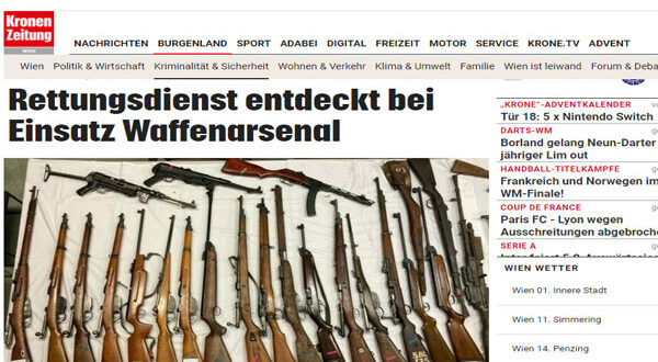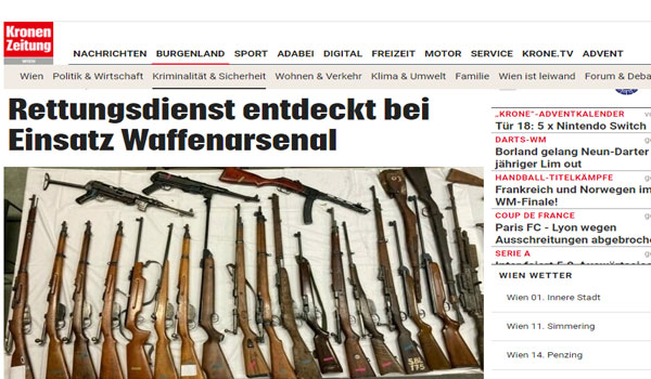 نشرت صحيفة كورونا النمساوية اليومية واسعة الأنتشار اليوم الجمعة الموافق 17 من ديسمبر 2021 ، أنه تم العثور على العشرات من الأسلحة المختلفة وأشياء أخرى خاصة بالنازية في شقة بالحى السابع عشر بفيينا