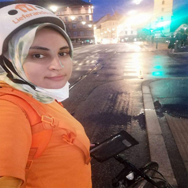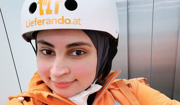وكان أخر محطة في رحلة عملها بدولة النمسا هي توصيل الطلبات للمنازل من خلال استقلال دراجة هوائية “دليفري”.
