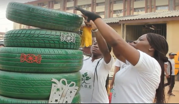 قال خبير البيئة في Temitope Okunno والعقل الإبداعي وراء المشروع: “نحن بحاجة إلى أن يشعر الجميع بالسعادة، وأن يشعروا بروح الكريسماس، وفي القيام بذلك قررنا أيضًا استخدام النفايات التي نجدها من حولنا، زجاجات البيبسى والإطارات.