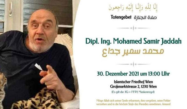 ببالغ الحزن والأسى والتسليم بقضاء الله وقدره تلقينا اليوم الأربعاء ظهراّ الموافق 29 من شهر ديسمبر 2021 ، خبر وفاة ” محمد سمير جداع ” سورى الأصل من مدينة حمص ، بعد معاناة طويلة ومريرة مع المرض