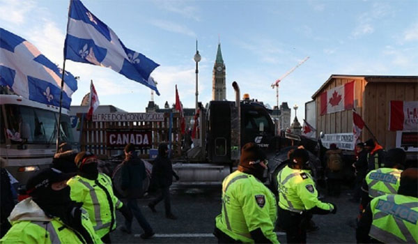 وكانت الحركة التي أطلق عليها اسم “قافلة الحرية” تهدف في الأصل للاحتجاج على قرار إلزام سائقي الشاحنات منذ منتصف يناير الماضي بالتطعيم ضد كوفيد لعبور الحدود بين كندا والولايات المتحدة، لكنها سرعان ما تحولت إلى حركة ضد القيود الصحية ككل وضد حكومة رئيس الوزراء جاستن ترودو.