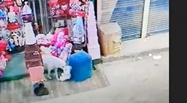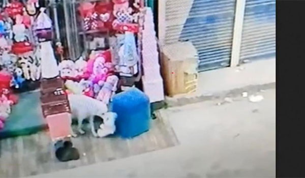 بالفيديو – كلب يخطف هدية عيد الحب من محل بملوى بجنوب مصر