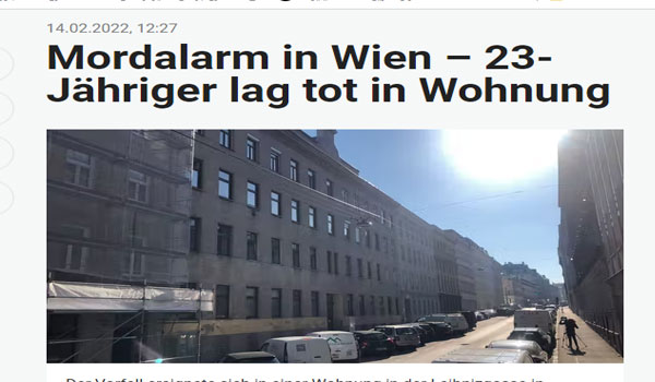 قالت الشرطة النمساوية اليوم الأثنين الموافق 14 من فبراير 2022، إنها وجدت شاب أفغانيا يبلغ من العمر 23 سنة مقتولاّ داخل شقته بالحى العاشر صباح اليوم ، بعد تعرضه لعدة طعنات متفرقة في جسدة