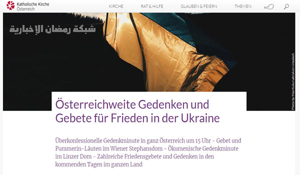 أحيت مختلف الطوائف الدينية اليوم الجمعة في النمسا في تملم الساعة الثالثة عصراّ صلاة من أجل والسلام في أوكرانيا ، شارك فيها الأساقفة رؤساء الكنائس وممثلوها ، وعدد كبير من الكهنة والشمامسة والرهبان والراهبات وجمع غفير من المؤمنين.
