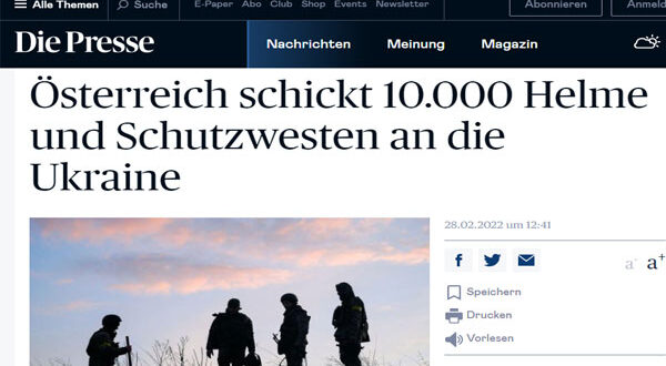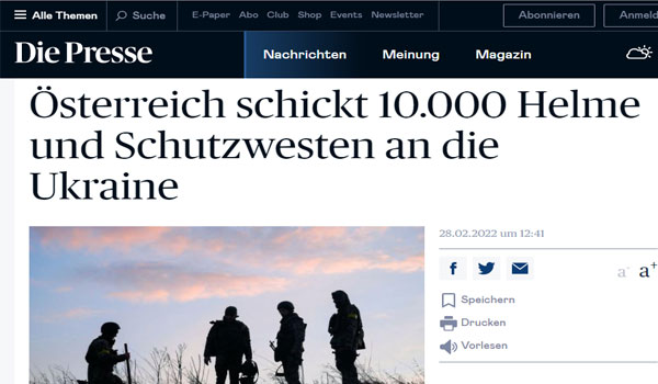 أرسلت النمسا أدوات حماية عبارة عن خوذات ووقود وسترات واقية إلى أوكرانيا ، جاء ذلك في مقابلة مع الرئيس النمساوى ألكسندر فان دير بيلن لإبلاغه بالوضع الحالي في أوروبا