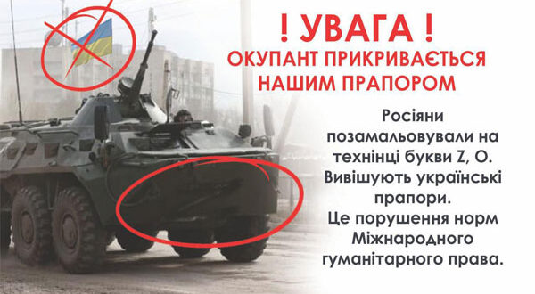 وقال القائد العام للقوات المسلحة الأوكرانية فاليري زالوجني، في منشور على “فيسبوك”: “يلجأ الجيش الروسي لحيلة ترمي إلى تضليل القوات الأوكرانية، هي رفع العلم الأوكراني على المعدات العسكرية التابعة له”.