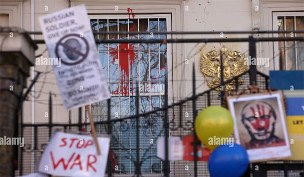 قالت السفارة الروسية اليوم في فيينا في بيان: “تم اليوم تنفيذ هجوم بربرى على مبنى السفارة بالحى التاسع عشر بطلاء أحمر مماثل للدم الذى يسيل في أوكرانيا