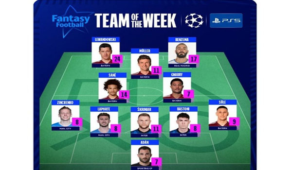 وتصدر بنزيما مع البولندي روبرت ليفاندوفسكي مهاجم بايرن ميونخ، فريق الأسبوع في دوري أبطال أوروبا، بعدما سجل كل منهما هاتريك في مرمى باريس سان جيرمان وريد بول سالزبورج على التوالي