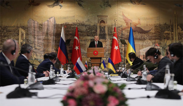 وافتتح الرئيس التركي، رجب طيب أردوغان، اليوم الثلاثاء، اجتماع المفاوضات بين الجانبين، معربًا عن إيمانه بعدم خسارة أي طرف في معادلة السلام العادل لما وصفها بـ”الأزمة الروسية- الأوكرانية”.