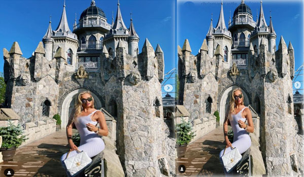 حيث تصحب كريستينا متابعيها الـ343 ألفاً في جولات في القلعة التي تضم شلالاً صخرياً، وهي تؤدي رقصات روتينية.