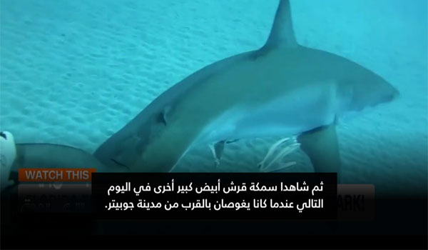 في حادثة وثقتها الكاميرا في أعماق المياه بالقرب من مدينة جوبيتر بولاية فلوريدا الأمريكية، تفاجأ غواصان مراهقان بعدد من أسماك القرش الأبيض الكبير تسبح بالقرب منهما، حيث كان هذا اللقاء الثاني من نوعه لهما في غضون 48 ساعة فقط. وتمكن أحدهما من لمس السمكة المفترسة بيده.
