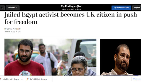 واشنطن بوست – الناشط المصري علاء عبد الفتاح يحصل على الجنسية البريطانية فهل خطوة من أجل انتزاع حريتة