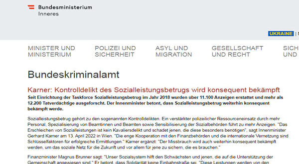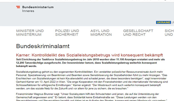 وأكد وزير الداخلية النمساوي أن الحصول على مزايا اجتماعية بشكل خفي ليس جريمة تافهة، حيث يضر ذلك بأولئك الذين هم في أمس الحاجة إلى تلك المساعدات.
