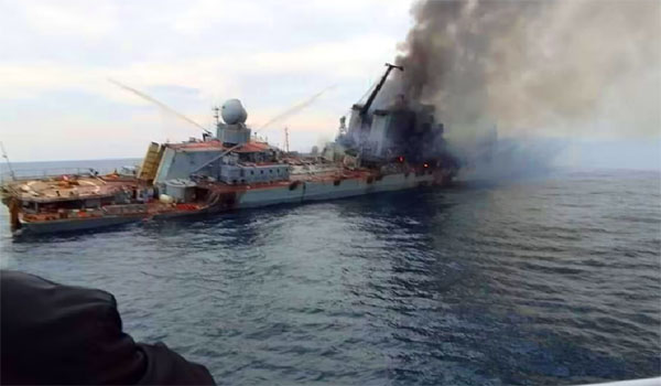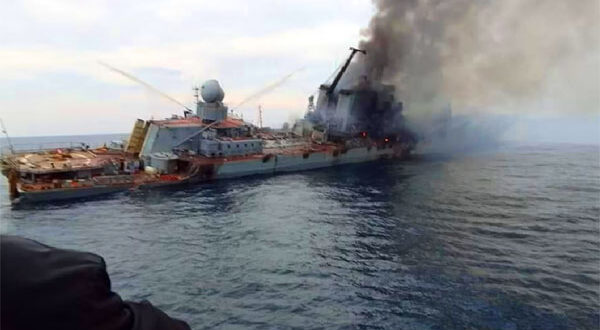 ظهر فيديو، مرفقا بمجموعة صور في بعض وسائل التواصل والإعلام، اليوم الاثنين، وفيه يمكن رؤية الطراد الروسي Moskva وقد شبت فيه النار بعرض البحر أثناء إجلائه إلى ميناء “سيفاستوبول” بشبه جزيرة القرم الخميس الماضي، ثم انتهي فيما بعد غرقا إلى مثواه الأخير في قاع البحر الأسود.