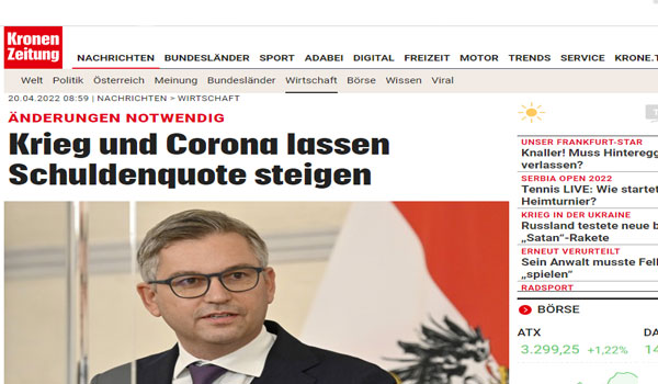 أكد ماجنوس برونر وزير المالية النمساوى أن حرب أوكرانيا ووباء كورونا تسببا فى ارتفاع عجز الميزانية النمساوية ونسبة الدين العام.