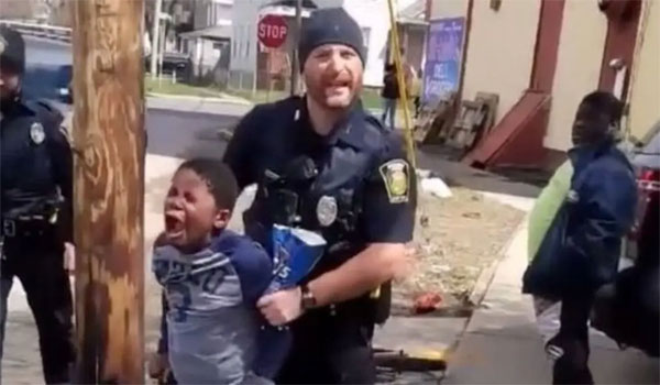 والفيديو الذي وصل عدد مشاهداته إلى أكثر من خمسة ملايين على تويتر يظهر الصبي باكيا ويداه خلف ظهره بينما يقتاده ضابط شرطة أبيض من قسم شرطة سيراكيوز إلى سيارة دورية.