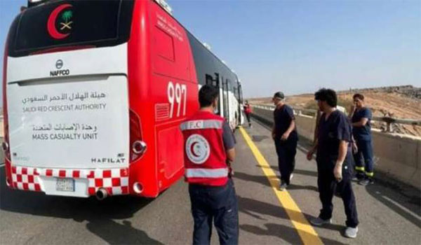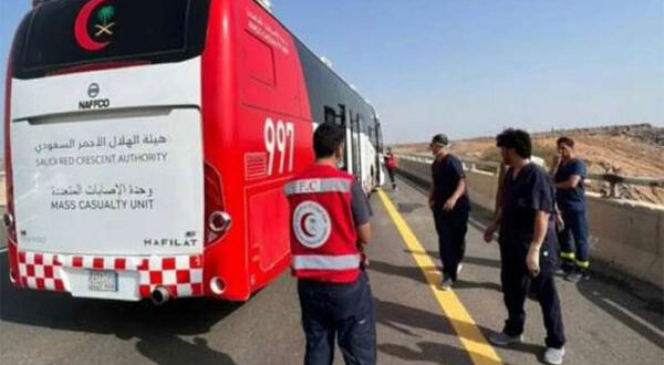 وأوضح مدير عام فرع هيئة الهلال الأحمر بمنطقة المدينة المنورة، أحمد الزهراني، أن غرفة عمليات الهلال الأحمر بالمنطقة 997 تلقت بلاغًا في تمام الساعة 06:14 من صباح أمس الجمعة، بوقوع حادث انقلاب حافلة بطريق الهجرة السريع عند كيلو 140، وعلى الفور تم توجيه أحدث المركبات الخاصة بالهيئة باص الإصابات المتعددة «طويق»، وكان وصول أول الفرق في الساعة 06:24.