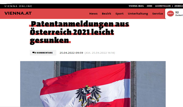 ووفقاً لبيان صادر عن مكتب براءات الاختراع النمساوى ، فقد تقدمت الشركات النمساوية بطلبات للحصول على حق 11031 براءة اختراع في جميع أنحاء العالم في عام 2021، وهذا أقل بقليل من العام قبل السابق (11534) ——-