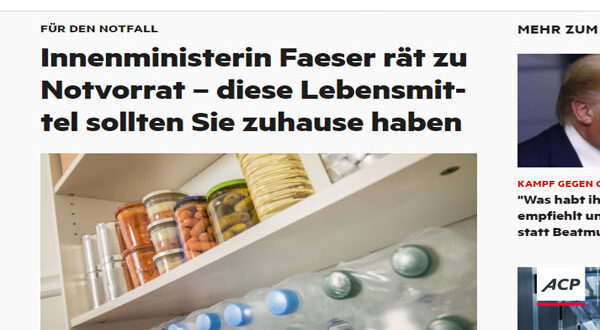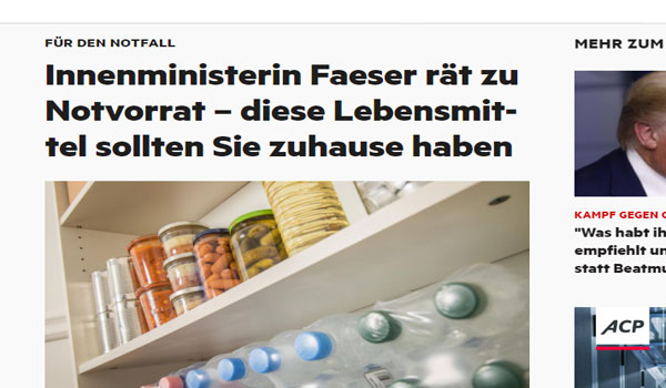 طالبت نانسي فيزر، وزيرة الداخلية الألمانية، المواطنين بضرورة الاحتفاظ بمخزون من الطعام والأدوية خلال الفترة القادمة؛ تحسبا لوقوع أي أزمة خلال الأيام المقبلة.