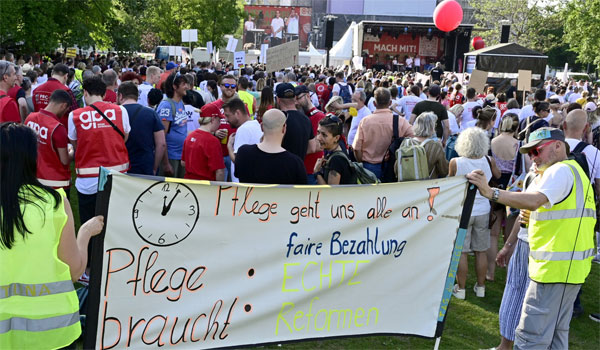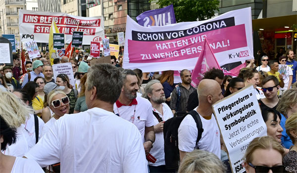شارك في المظاهرة حوالة عشرة الألأف ، وتطالب أطقم الرعاية الصحية التي واجهت بشجاعة وباء فيروس كورونا من الحكومة وضع “خطة جديدة للتوظيف” مع رفع الأجور ، كما يدعون أيضا إلى وقف سياسة غلق المستشفيات والمراكز الصحية ، مع القيام بشيء ما وبسرعة لكل العاملين في قطاع الصحة، وليس فقط عاملين التمريض، كما يريدون تحسينات في قطاعي الصحة عامة والتمريض خاصة، ويكون هذا واقع ملموس وليس مجرد وعود فارغة في مؤتمرات صحفية ومن جهة أحرى جمعت مبادرة المواطنين البرلمانية “Achtung Gesundheit” حوالى أكثر من 74000 توقيع.