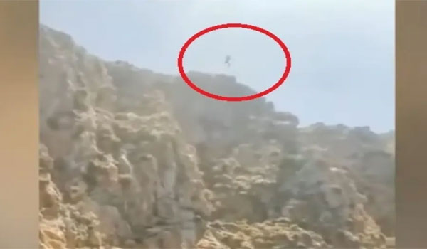 كما أظهر الفيديو المغامر، وهو يسقط بسرعة عالية، وأسفله صخور حادة وخشنة، قبل أن يصطدم بالمياه مطلقاً صرخة مرعبة، وفقا ما أفادت صحيفة “نيويورك بوست”.