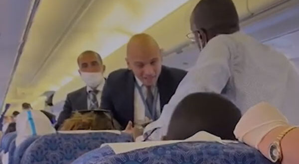 شهدت طائرة مصرية مشادة بين راكبة إفريقية تتحدث العربية ومضيف مصري بسبب جلوسها على غير المقعد المخصص لها، ورفضها تعليمات الموظف بالتوجه إلى مقعدها الأساسي.