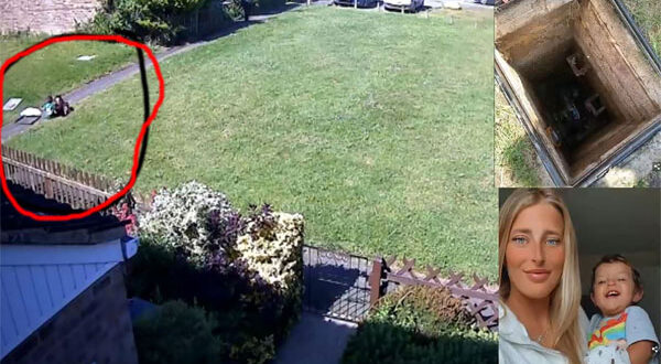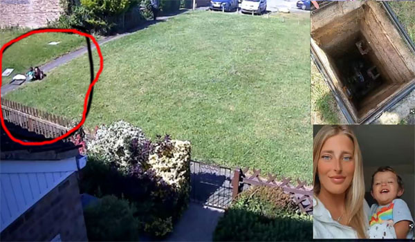 وأظهرت إحدى الكاميرات الأم إيمي بليث، تتجول مع ابنها ثيو بريور 18 شهرا، عندما انقلب فجأة غطاء مياه الصرف، وسقط الطفل.