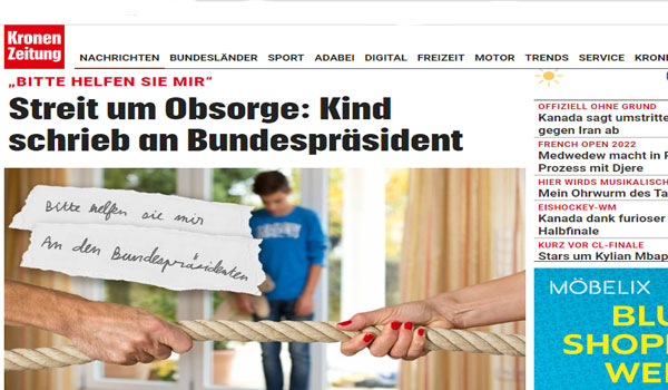 قرر طفل يبلغ من العمر 10 سنوات بالكتابة إلى رئيس الجمهورية بالقول “الرجاء مساعدتي “- بهذه الكلمات اليائسة، خاطب الطفل الرئيس ألكسندر فان دير بللن العام الماضي، حيث أنه يعيش منذ ما يقرب من عامين وسط نزاع بين والديه على حضانته، وهى ليست الحالة الوحيدة في النمسا – ومشهد يعاني منه الكثير من الأطفال على وجه الخصوص.