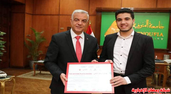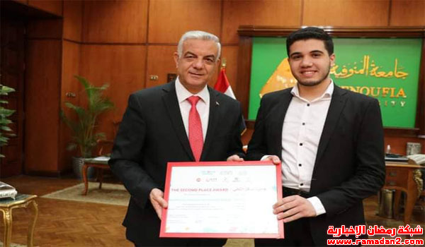 وكرم الدكتور عادل مبارك رئيس جامعة المنوفية، طالب كلية الطب لتميزه وحصوله على المركز الثاني في حفظ القرآن الكريم في مسابقة بروسيا.