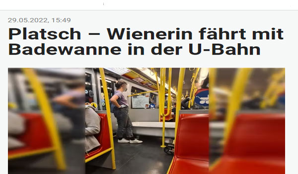نشرت اليوم صحيفة هويتة النمساوية اليومية ، صورة مثيرة للسخرية، تظهر بانيو إستحمام كبير الحجم داخل عربة مترو الأنفاق رقم 4 المتجهة إلى هيلجن إشتات في فيينا ، مما أثارت الصورة موجة من السخرية والتعليقات السلبية على الخبر بمواقع التواصل الاجتماعي إذ التقط راكب يسمى أليكس صورة للبانيو وأرسلها عبر بريد القراء إلى صحيفة هويتة اليومية