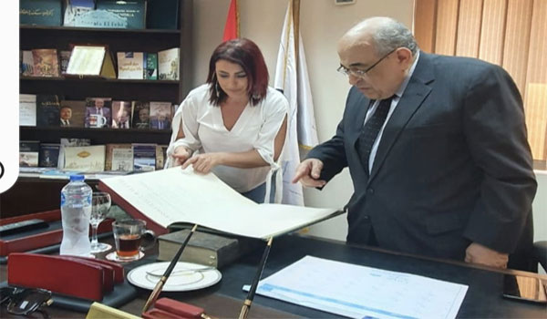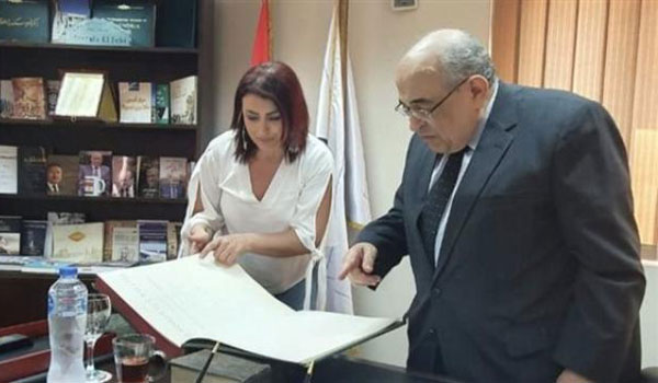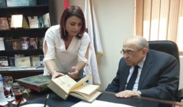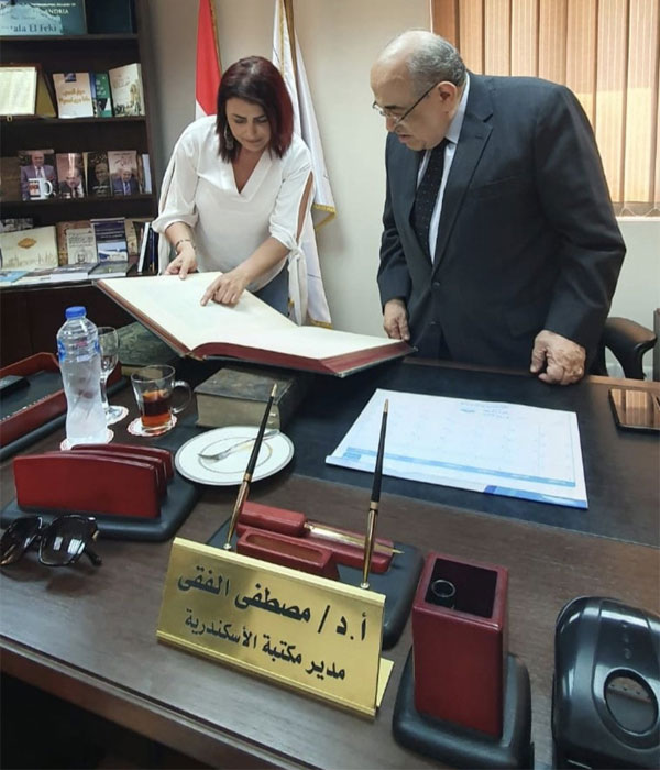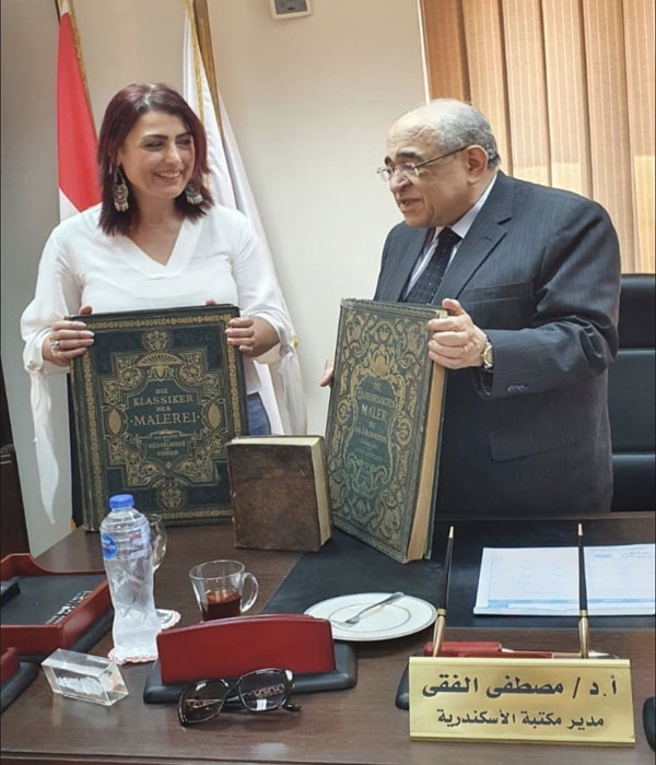بالصور -الروائية النمساوية سونيا بوماد تسلم مكتبة الإسكندرية عددا من الكتب التراثية النمساوية النادرة